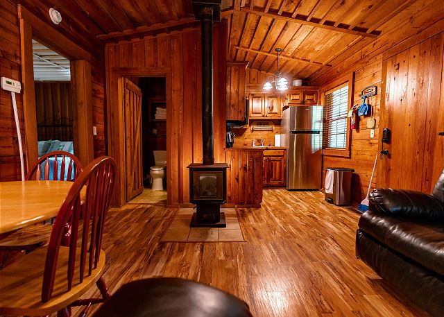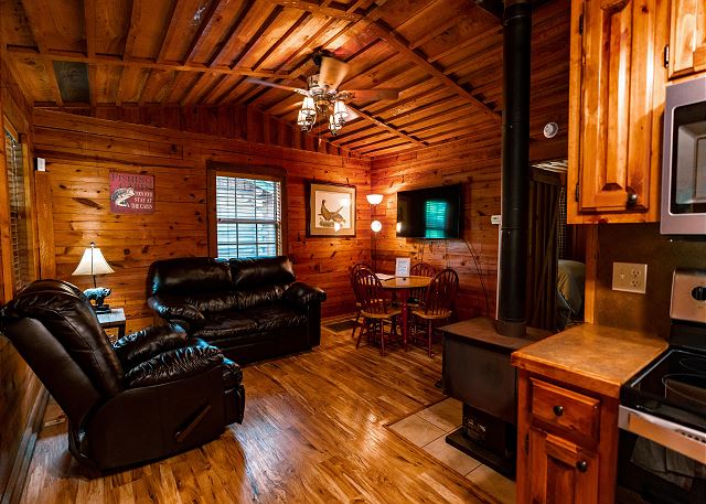 When you’re not out on the river, you can enjoy the rocker on the quaint deck with a picturesque view, whether it’s morning, noon, or night, you’ll always enjoy watching the Little Red River float by. With access to the river, you’ll be able to fish off the banks or hop in a boat in search of your perfect fishing spot to catch some world class trout. This cabin also includes a dock at the local marina.
