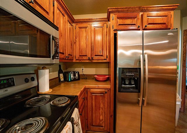 Full Kitchen, Refrigerator, Coffee Maker, Ice Maker, Microwave, Toaster, Cookware