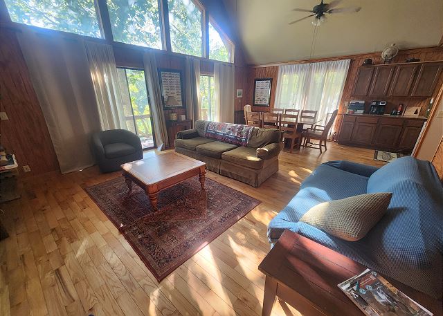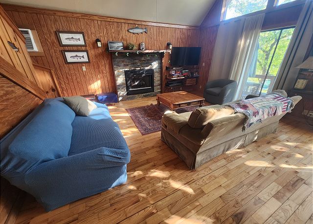 baby crib, combination tub/shower, king, queen, shower, toilet, tub, autumn foliage, churches, cinemas, festivals, forests, library, marina, museums, playground, pond, recreation center, restaurants, Books, Games, Television, Books for Kids, Smart TV, Air Conditioning, Clothes Dryer, Fireplace, Heating, Internet, Linens Provided, Living Room, Parking, Towels Provided, Washing Machine, Fire pit, Desk, Wifi, Desk Chair, Coffee Maker, Dishes & Utensils, Ice Maker, Kitchen, Microwave, Oven, Pantry Items, Refrigerator, Stove, Toaster, Dining Table, Dishes & Utensils for Kids, antiquing, bird watching, horseshoes, paddle boating, photography, scenic drives, sight seeing, walking, ATM/bank, fitness center, groceries, hospital, laundromat, massage therapist, medical services, River, Rural, Water View, Waterfront, Balcony, Deck / Patio, Outdoor Grill, bedroom, full, other, fishing, fly fishing, freshwater fishing, hiking, swimming, children welcome, non smoking only, pets considered, wheelchair inaccessible, Minimum Age Limit for Renters, flexible, recommended, Dining Area, Housekeeper Included, Adventure, Away From It All, Family, Sports & Activities, Outdoor lighting, Deadbolt lock on entryway, Smoke detectors, Carbon monoxide detector, Enhanced cleaning practices, Clean with disinfectant, No-contact check-in and check-out, High touch surfaces cleaned with disinfectant, Towels and bedding washed in water that's at least 60sC/140sF